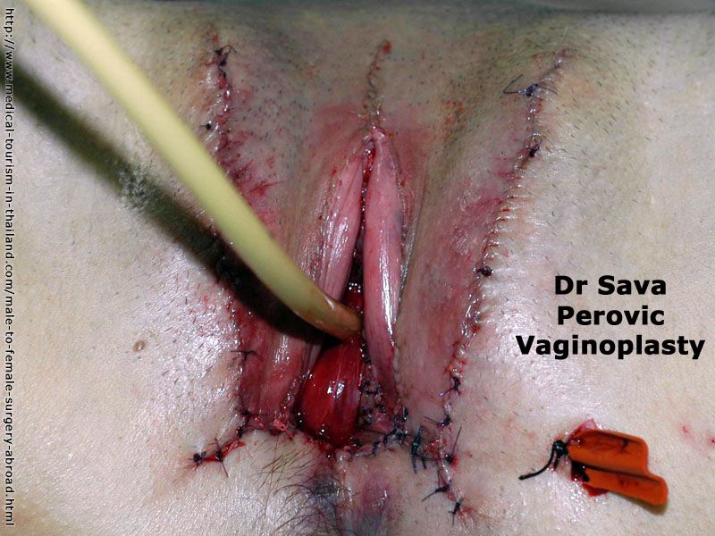 The outer part of the neovagina is joined to the previously created labia minora and majora and the other end is closed.